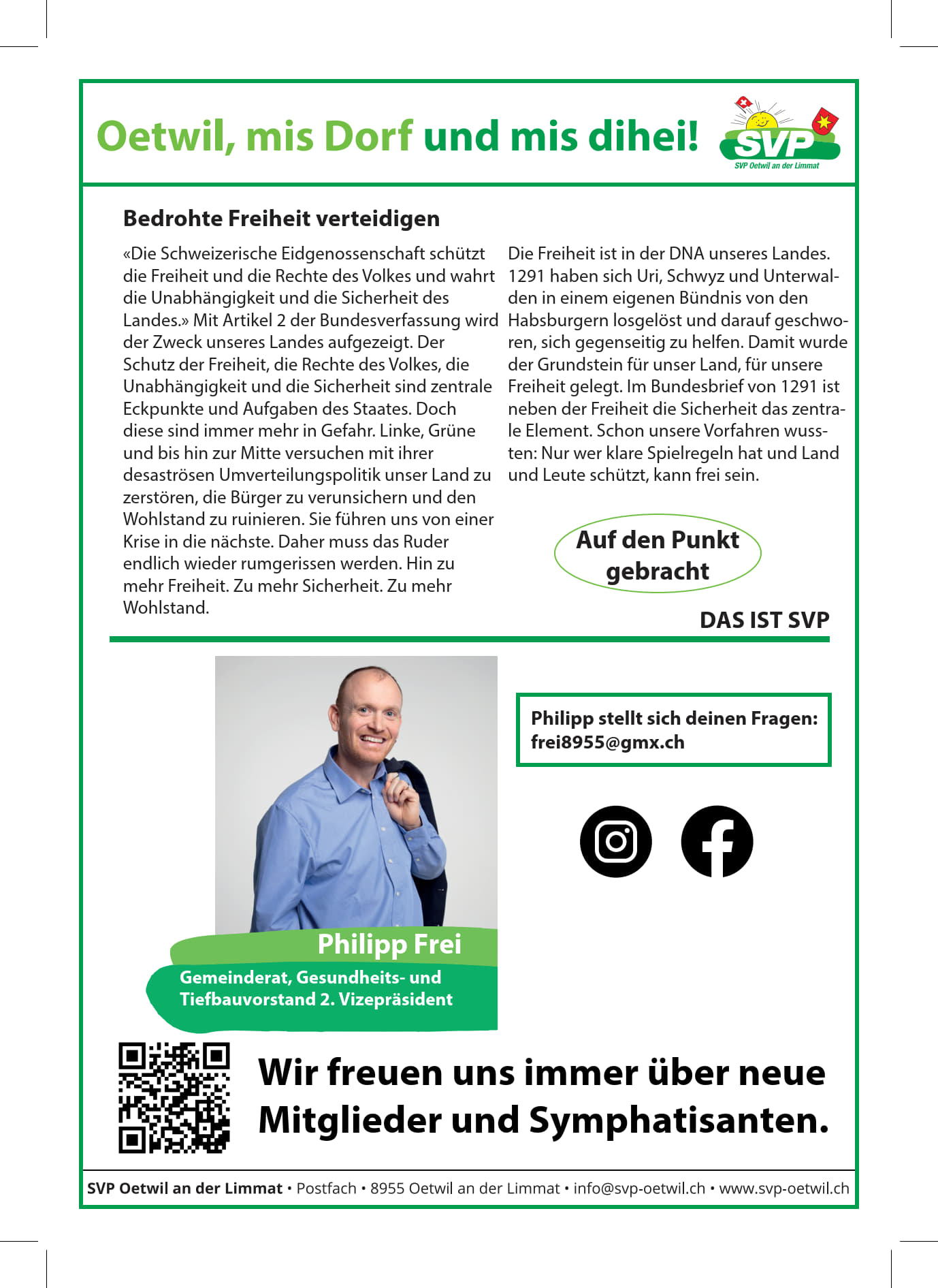 SVP Oetwil a.d.L. Postfach CH-8955 Oetwil a.d.L.